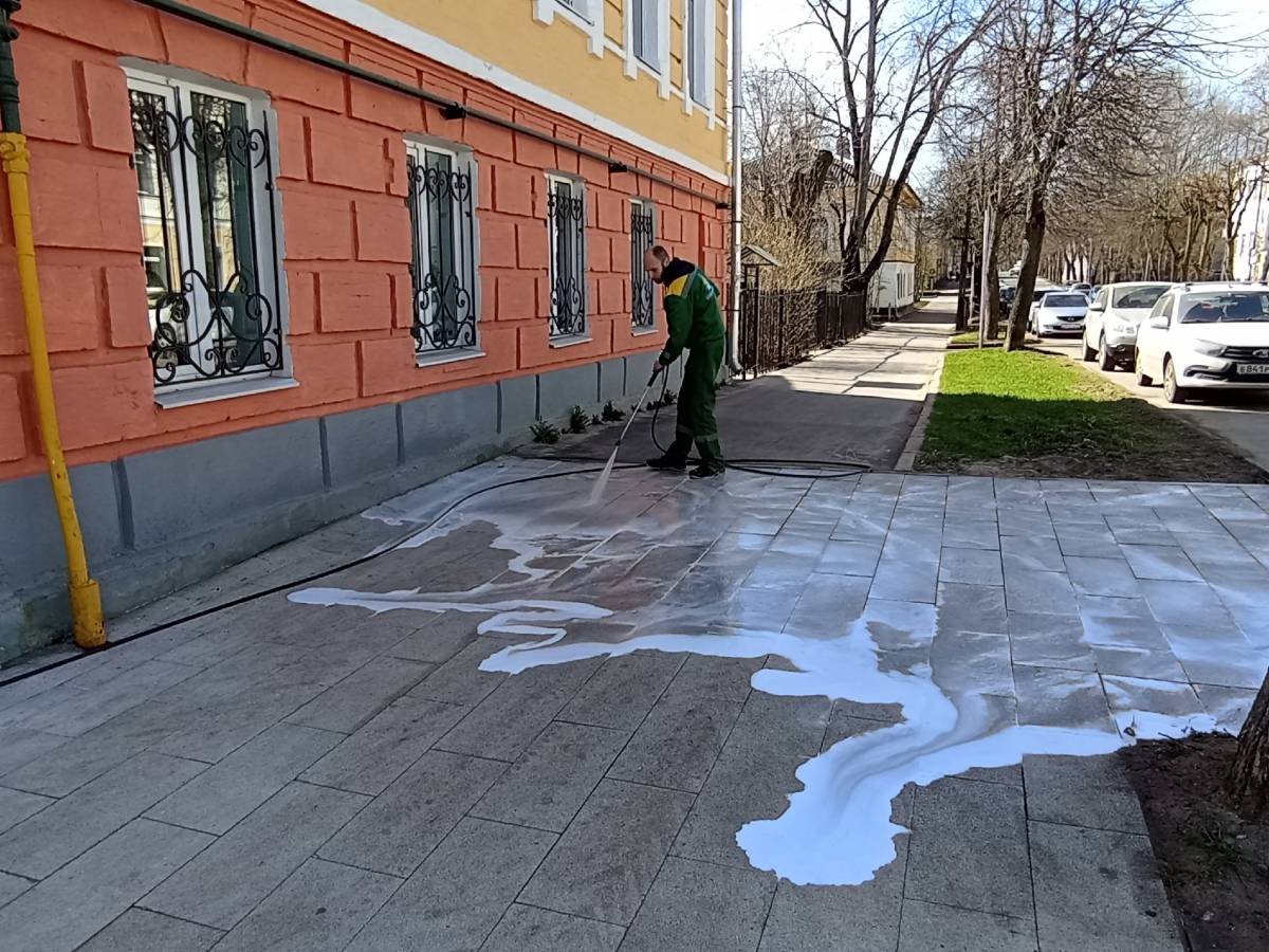 В Великом Новгороде впервые начали мыть улицы шампунем