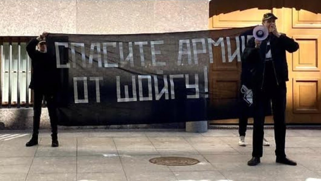 Петербургские активисты национал-большевистской партии «Другая Россия Э.В. Лимонова» провели несанкционированную акцию протеста у Главного штаба на Дворцовой площади, требуя отставки министра обороны РФ Сергея Шойгу. По словам партийцев, среди протестующих был ветеран СВО.