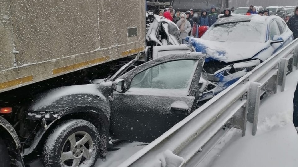 В социальных сетях очевидцы сообщают о нескольких десятках повреждённых в массовом ДТП автомобилях. Информация о пострадавших уточняется. По предварительным данным, один человек (женщина) погиб, три человека пострадали. Затор растянулся на несколько километров.