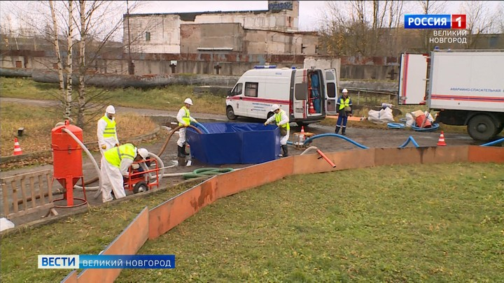 В Великом Новгороде на территории левобережной котельной номер 71 прошла тренировка по ликвидации разлива мазутного топлива.