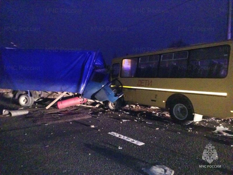 © ГУ МЧС России по Новгородской областиДТП зарегистрировано в 06:55. 60-летний водитель за рулем грузовой Газели, по предварительным данным, ехал в сторону Санкт-Петербурга. Он не справился с управлением, выехал на встречную полосу и столкнулся со школьным автобусом ПАЗ, за рулем которого был 58-летний мужчина.