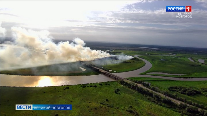 Недалеко от Великого Новгорода на заливных лугах вдоль реки Малый Волховец произошёл крупный травяной пожар