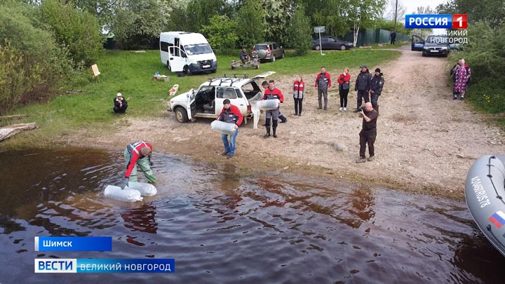 Около 70-ти тысяч личинок щуки было выпущено в реку Шелонь в окрестностях поселка Шимск сотрудниками Новгородского металлургического завода во время благотворительной акции по зары