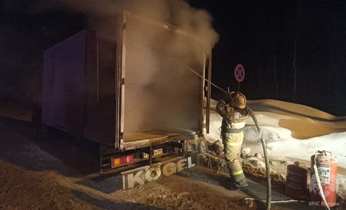 В 5:40 пожар ликвидировали. Огонь повредил кабину и грузовую платформу автомобиля. Причины пожара устанавливают.