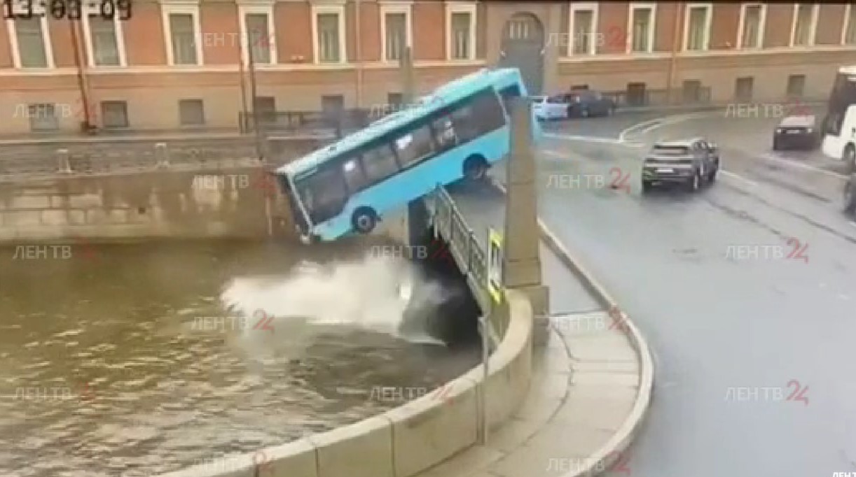 Сегодня, 10 мая, в Санкт-Петербурге у моста Поцелуев произошло ДТП с пассажирским автобусом, после которого он вылетел за мостовую ограду и упал в Мойку .
