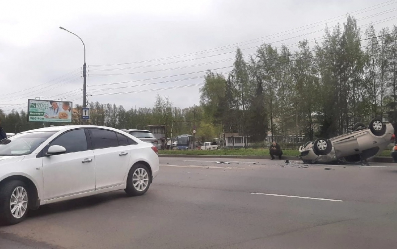Утреннее ДТП в Великом Новгороде: легковой автомобиль перевернулся на крышу