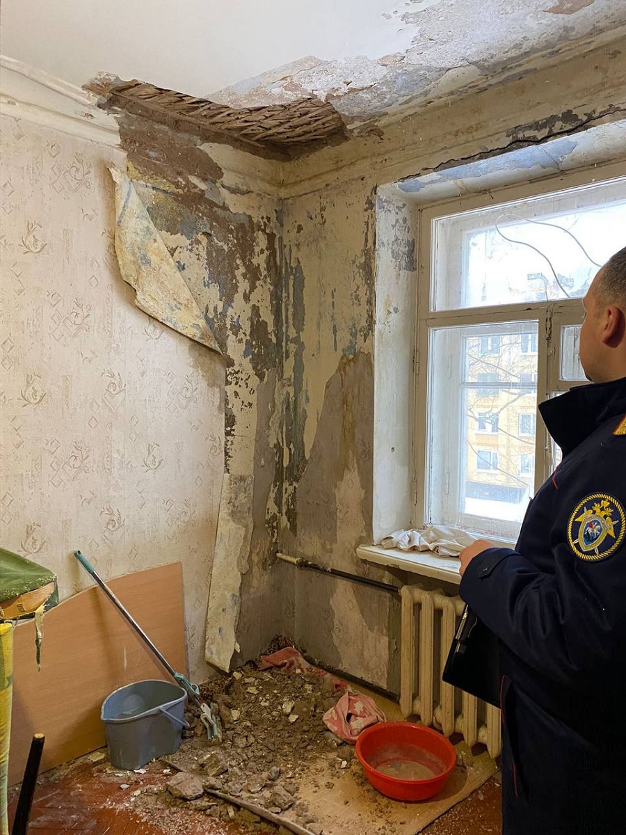Как предварительно было установлено, с наступлением потепления и таяния снега начала протекать крыша многоквартирного дома, где проживают люди. Кровля стала пропускать воду, которая пошла в квартиры. В результате в одной из квартир рухнула часть потолка, а на стенах появилась плесень.