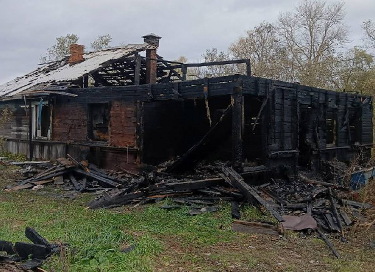 На момент прибытия подразделений противопожарной службы области установлено, что открытым пламенем горит часть кровли нежилого дома.