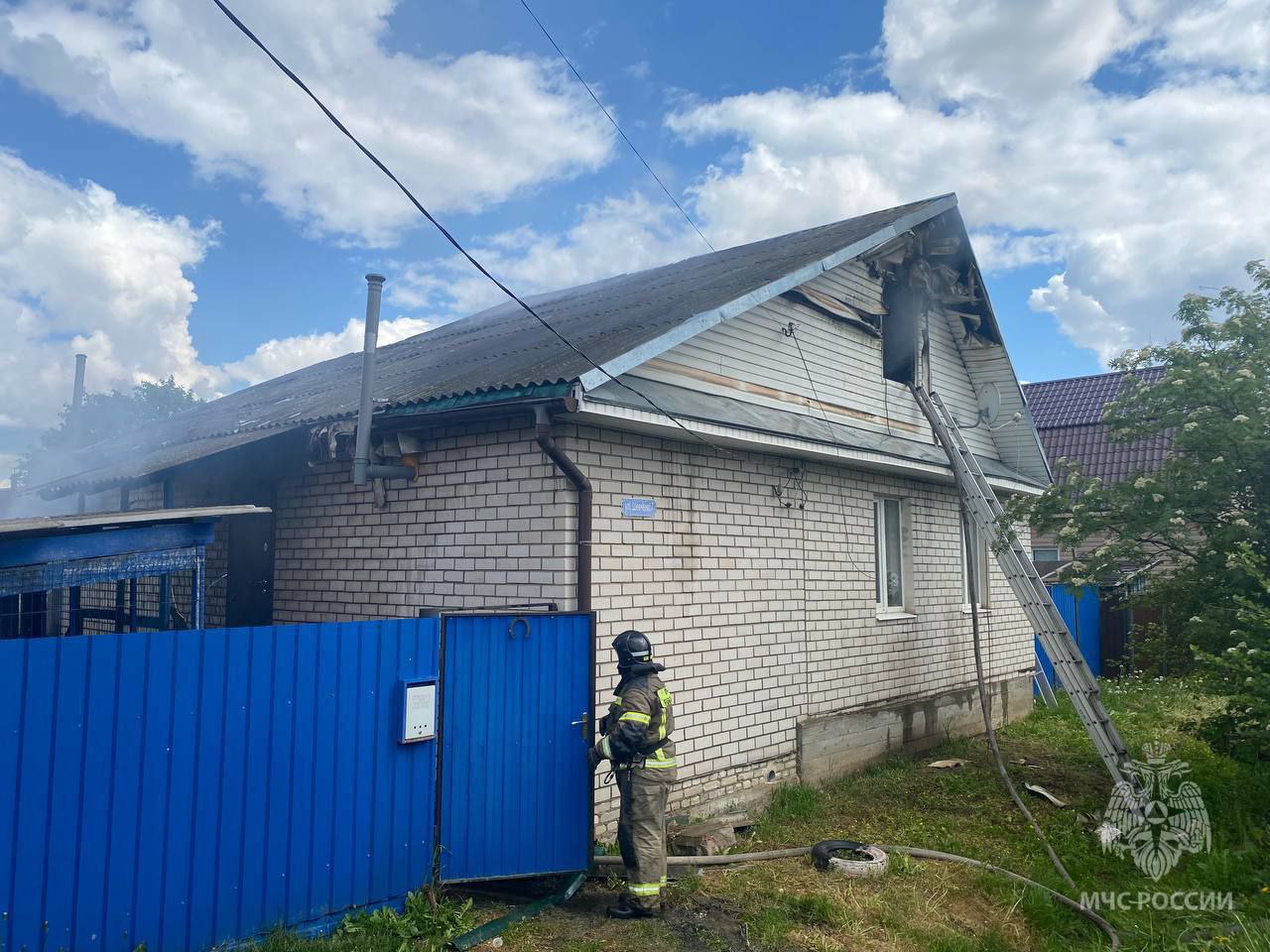 В 14:16 пожар ликвидирован. В результате хозпостройка уничтожена, повреждены чердачные перекрытия и отделка дома.