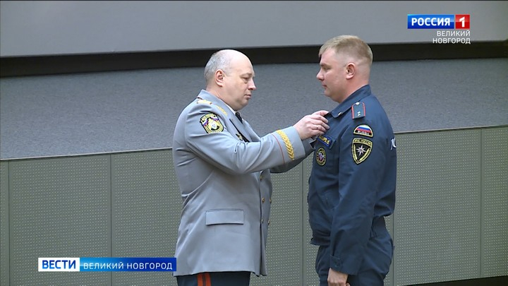 30 апреля в России отмечают День пожарной охраны. В канун этой даты новгородские сотрудники МЧС собрались в зале мультимедийного центра "Россия", где вспомнили историю возникновения службы и отметили наградами отличившихся коллег. В их числе и командир отделения отдельного поста Александр Бахарев, который получил медаль за спасение на пожаре. В начале года он участвовал в тушении горящей квартиры на девятом этаже дома. Благодаря слаженности действий спасателей и отваге каждого, удалось вывести из огня четырех человек - хозяйку и её трех детей.