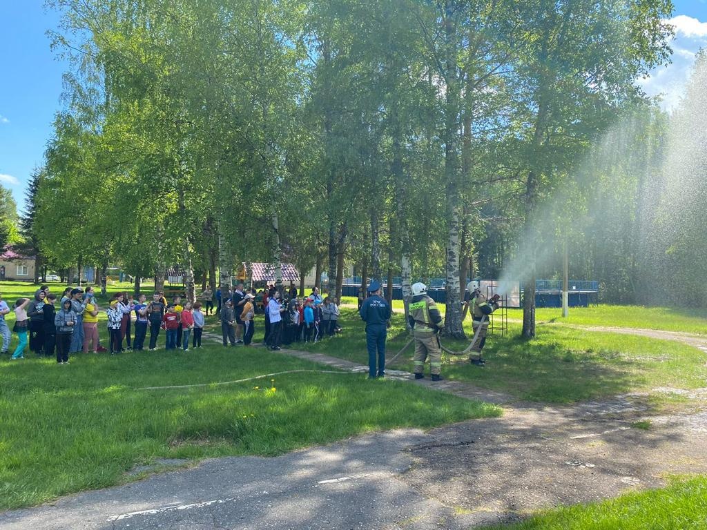В детский оздоровительный лагерь «Лесная сказка» в гости к детям приехали пожарные 3 пожарно-спасательного отряда ФПС ГПС Главного управления МЧС России по Новгородской области,