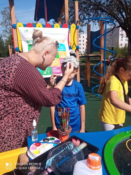 Пускать мыльные пузыри всегда было любимым занятием детей, вот и в этот день мыльные пузыри стали главным действием на празднике, а еще всем участникам были нарисованы аквагримом веселые дельфинчики.