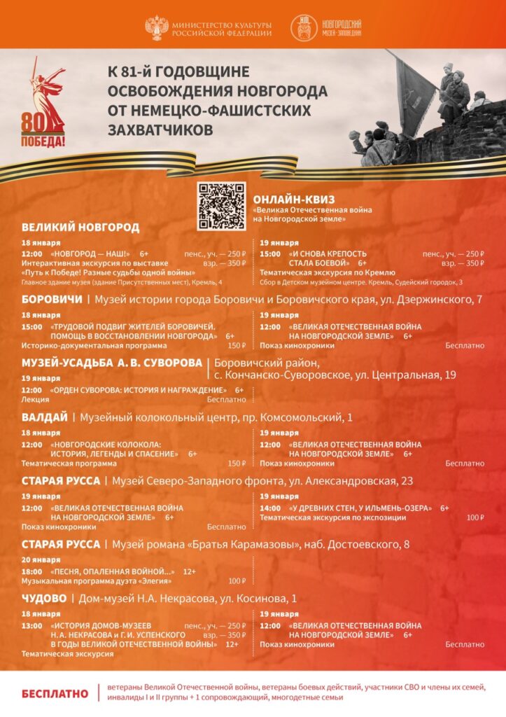 Афиша мероприятий музея-заповедника к 81-летию освобождения Новгорода