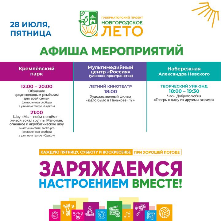 Афиша «Новгородского лета» с 28 по 30 июля