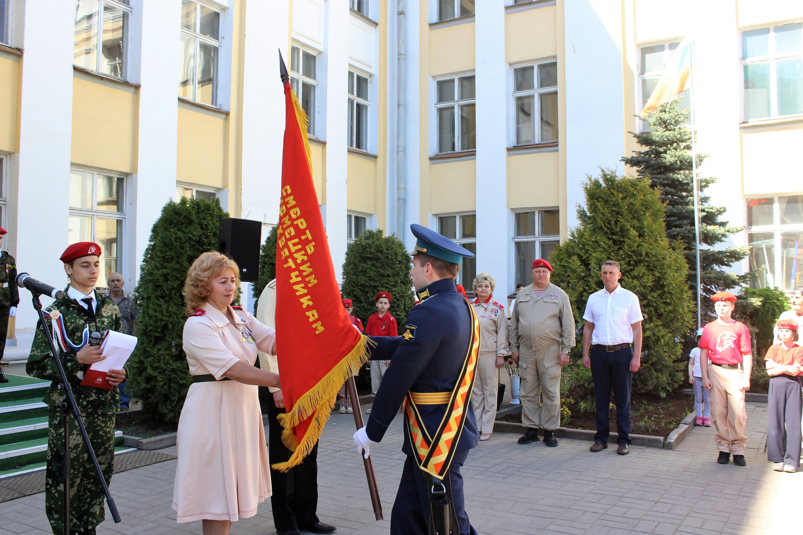 Помимо этого, в торжественной обстановке ребятам вручили знамя Юнармии и передали на вечное хранение Боевое знамя 32 гвардейского Новгородского отдельного тяжёлого танкового полка .