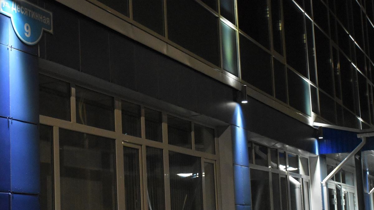 Фасад дворца спорта на Десятинной в Великом Новгороде подсветили