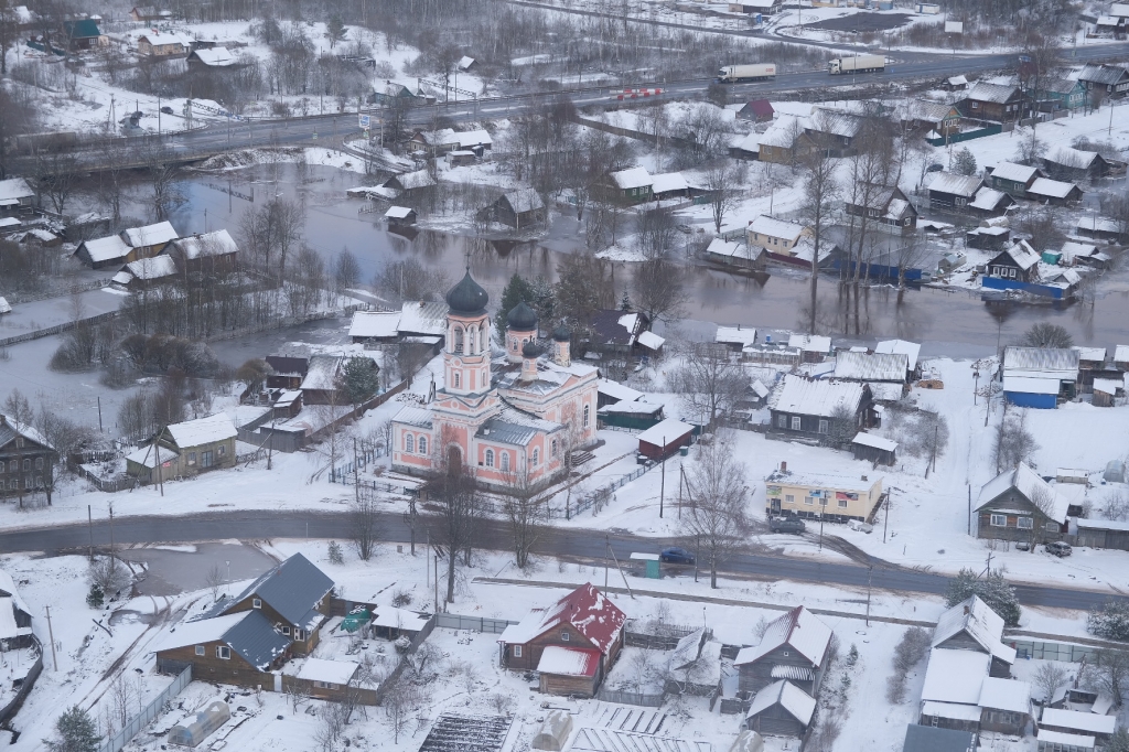Сегодня, 30 марта, губернатор Новгородской области Андрей Никитин и глава управления МЧС России по Новгородской области Сергей Козырев пролетели на вертолёте над подтопленными районами.