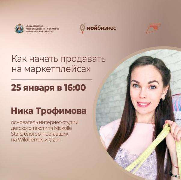 Спикер: новгородский предприниматель Ника Трофимова, основатель интернет-студии детского текстиля Nickolle Stars, блогер, поставщик на Wildberries и Ozon.