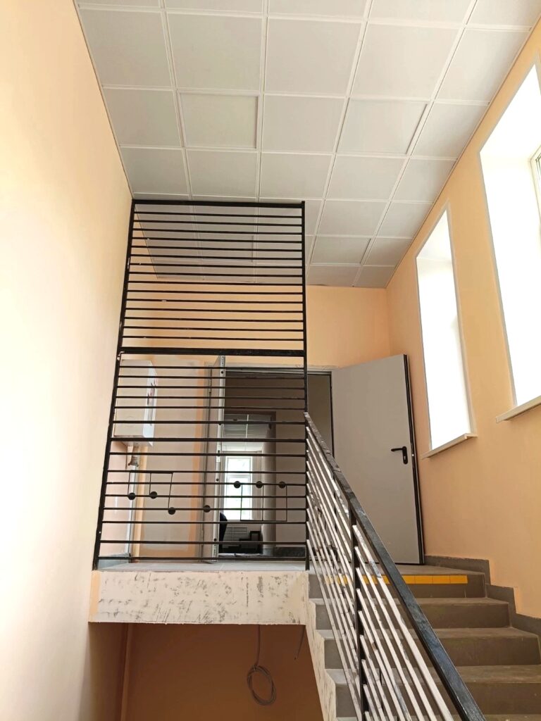 Сейчас идут работы по окраске фасада, внутренних помещений, проводится монтаж подвесных потолков, окон и дверей, завершаются электромонтажные работы, укладка напольной плитки и линолеума.