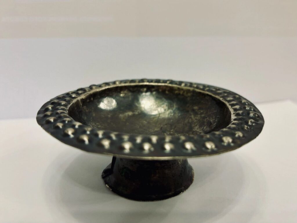 Чаша с процветшим византийским крестом на днище, вероятнее всего, использовалась для причастия.