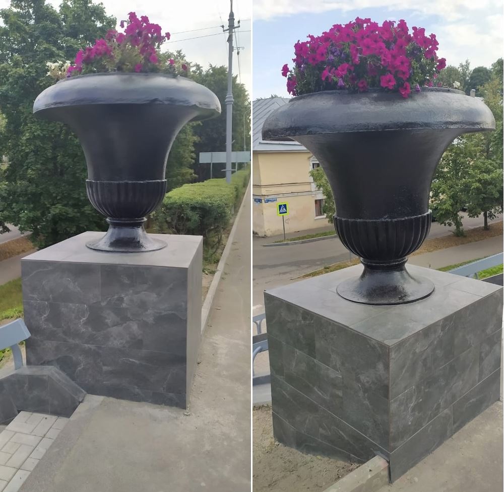 По данным МКУ «Городское хозяйство», отремонтированы не только ступени, но и выполнена новая облицовка плиткой постаментов и перильных ограждений. также была произведена покраска вазонов.