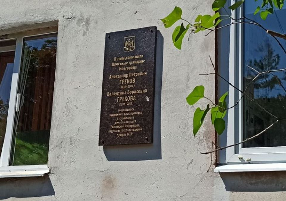 1 июля, в День реставратора, состоялась торжественная церемония открытия мемориальной доски в память о Почётных гражданах Новгорода, выдающихся художниках-реставраторах, заслуженных деятелях искусств Российской Федерации, лауреатах государственной премии СССР Александре Петровиче Грекове и Валентине Борисовне Грековой.