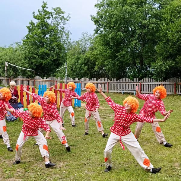 Концертные номера, игры, конкурсы, юмористические сценки создали атмосферу яркого, весёлого народного праздника. В программе принимали участие детский, образцовый хореографический коллектив "Непоседы"( рук. Т. Матвеева); солисты А. Громова, З.Сокуренко, Р. Григорьева, С. Васильева, Т. Матвеева. Прочла свои стихи Г. Щербакова. Все выступления восторженно принимались зрителями, которые, несмотря на переменчивую дождливую погоду, собрались у автоклуба. Ребята с большим удовольствием принимали участие в играх и забавах.