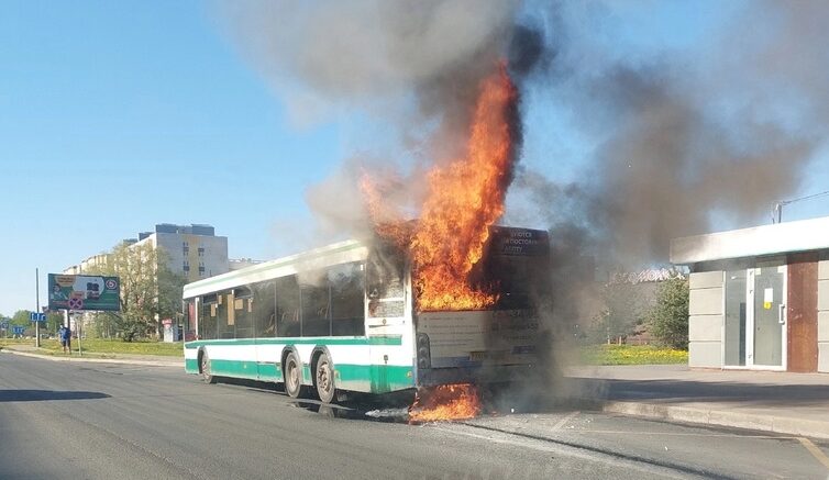 В Великом Новгороде вспыхнул автобус (февраль 2019 года)