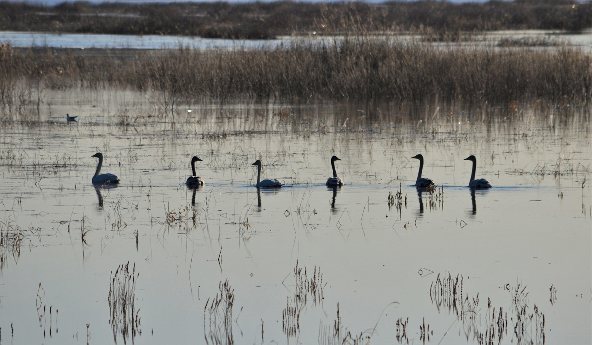 Возле Волотово на заливных лугах и на Малом Волховце близ Великого Новгорода обосновались лебеди-кликуны.