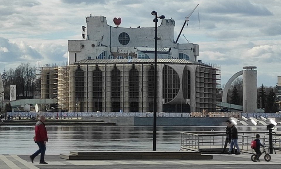 Новгородцы заметили пульсирующее сердце над театром драмы имени Достоевского, который закрыт на реконструкцию .