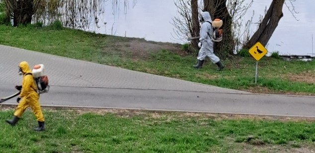 По данным на 3 мая в Новгородской области проведены акарицидные обработки на площади 24,35 г. На фото — обработка в парке «Луговой».