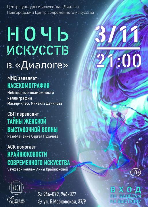 3 ноября в 21:00 в Новгородском центре современного искусства (Большая Московская улица, дом 37/9) состоится Ночь искусств.