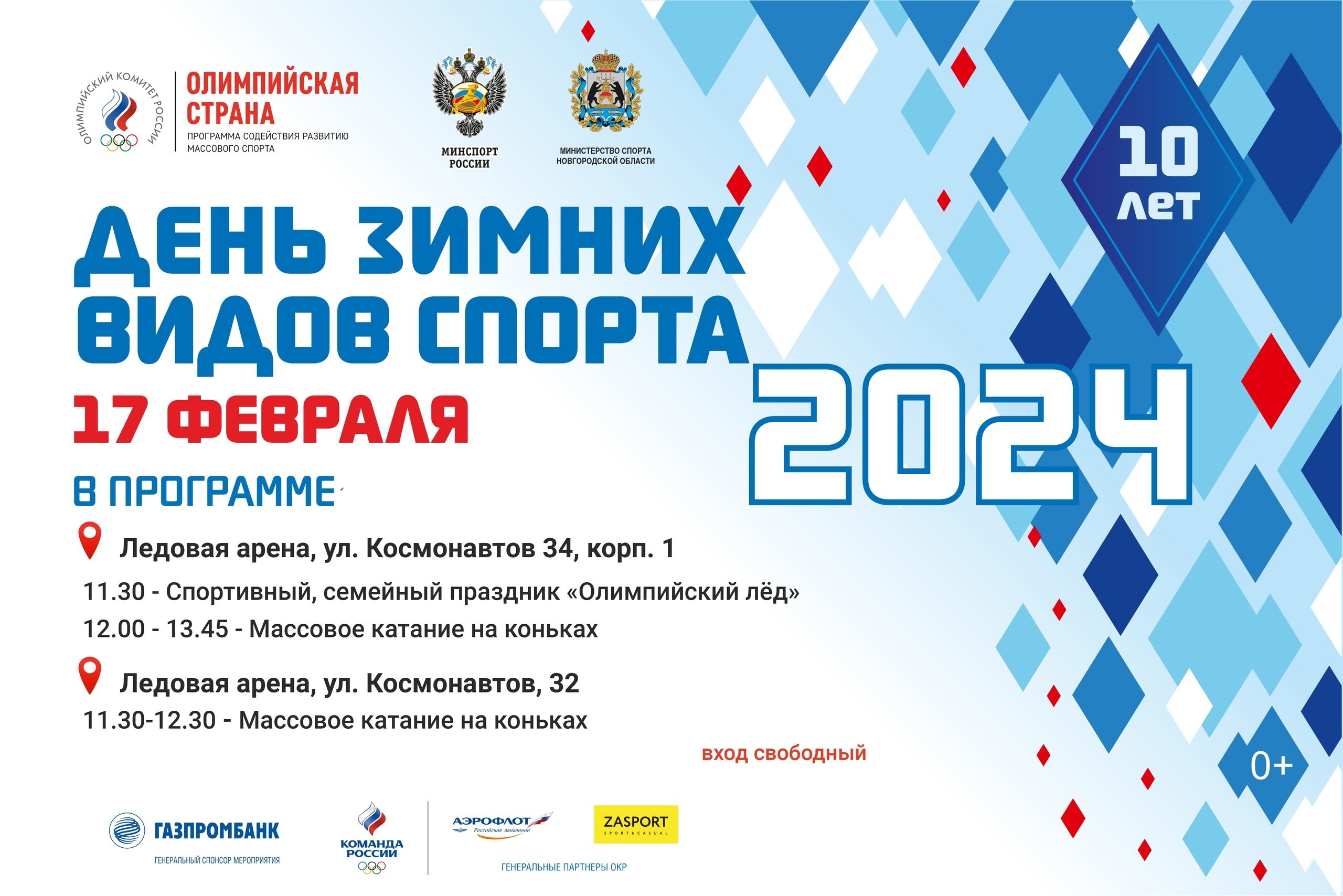 0+ 17 февраля на Ледовой арене Великого Новгорода пройдет спортивно-семейный праздник «Олимпийский лёд», посвящённый Дню зимних видов спорта.