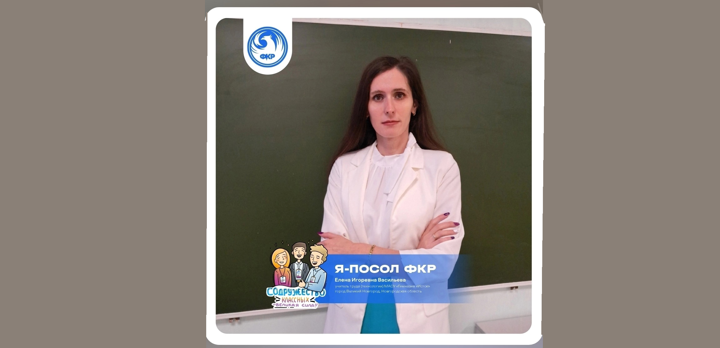 Учитель технологии гимназии «Исток» Великого Новгорода Елена Васильева стала послом Форума классных руководителей (ФКР) от Новгородской области.