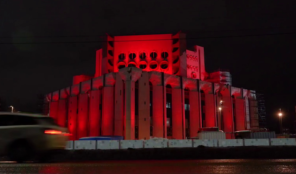 Новгородский театр драмы имени Достоевского перед новогодними праздниками получил архитектурную подсветку здания.