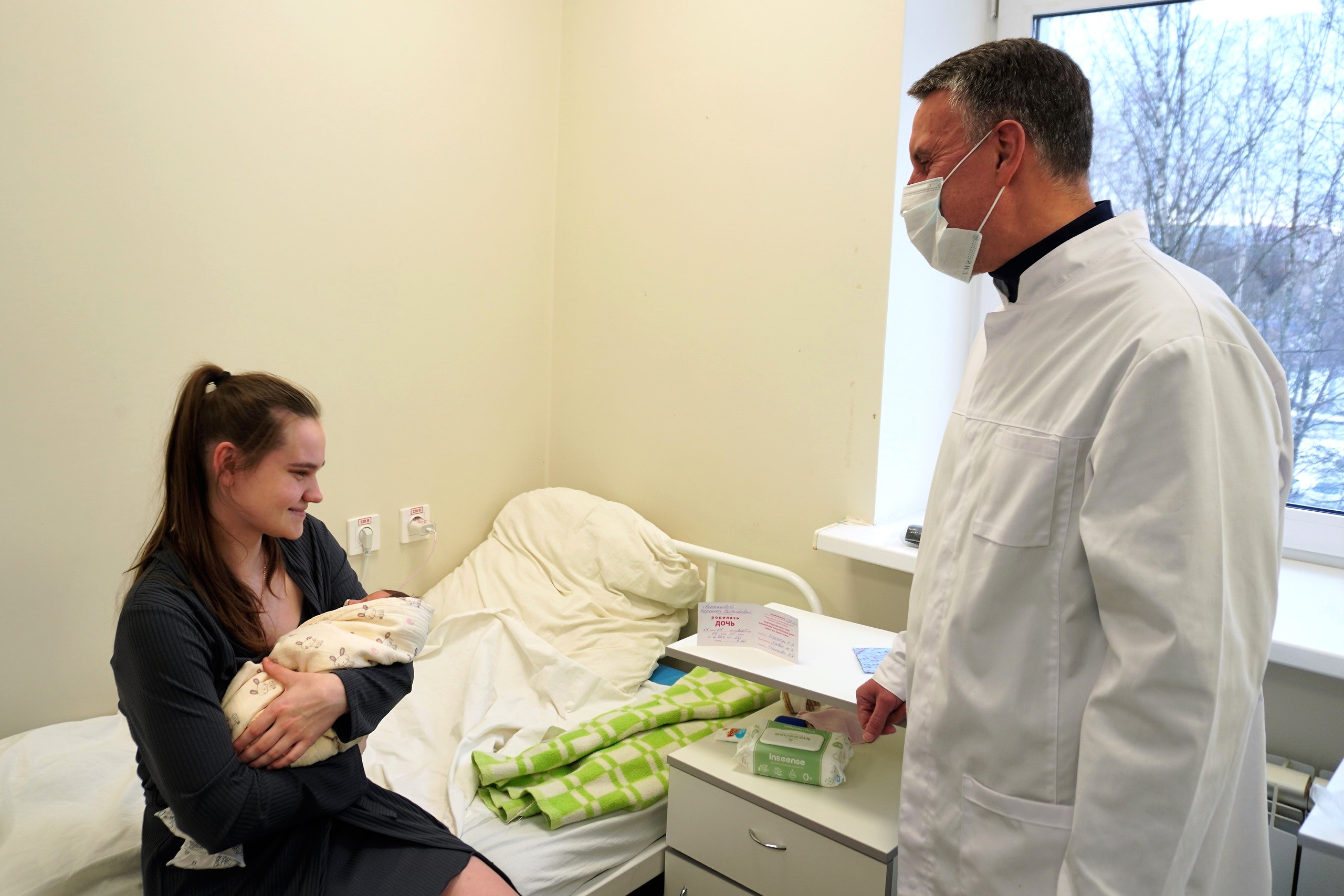 Поздравить с рождением дочери Веронику Беспалову пришли градоначальник и главврач Новгородского областного перинатального центра имени В.Ю. Мишекурина Александр Андриенко .