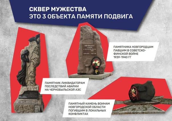 Проект "Наш выбор" реализуется в Новгородской области благодаря инициативе губернатора Андрея Никитина. В этом году впервые и у жителей Великого Новгорода появилась возможность принять в нем участие. Жители сами определили 5 территорий, которые должны быть благоустроены в этом году. Среди них — сквер Мужества. 4 другие - это сквер на наб. р. Гзень, площадка у школы 18, сквер Мирный и территория у памятника самолету в Кречевицах.
