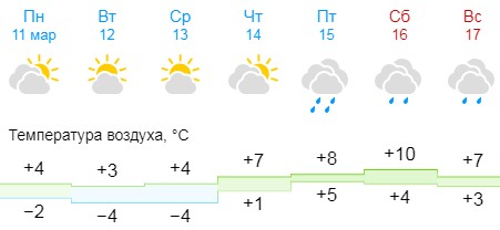 Погода для жителей Великого Новгорода, Боровичей и Старой Руссы с 11 по 17 марта