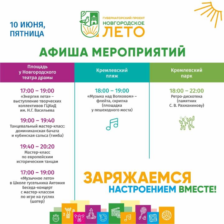 Приглашаем новгородцев на «Новгородское лето» с 10 по 12 июня