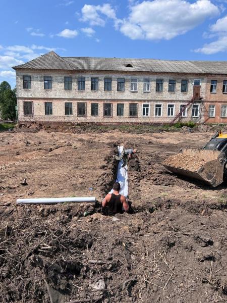 Продолжаются работы по укладке дренажных труб на общественной территории по ул. Кирова 9-А