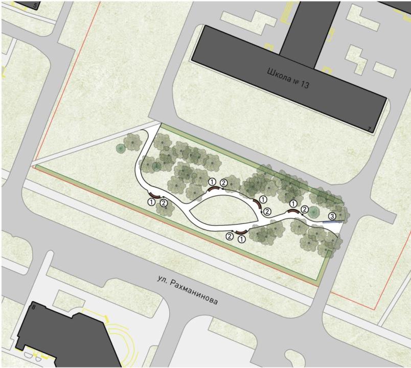 - «Классик-парк «Школьно!». Благоустройство территории рядом с МАОУ «Средняя общеобразовательная школа № 13 с углубленным изучением предметов», ул. Рахманинова, д.7 (2 этап);