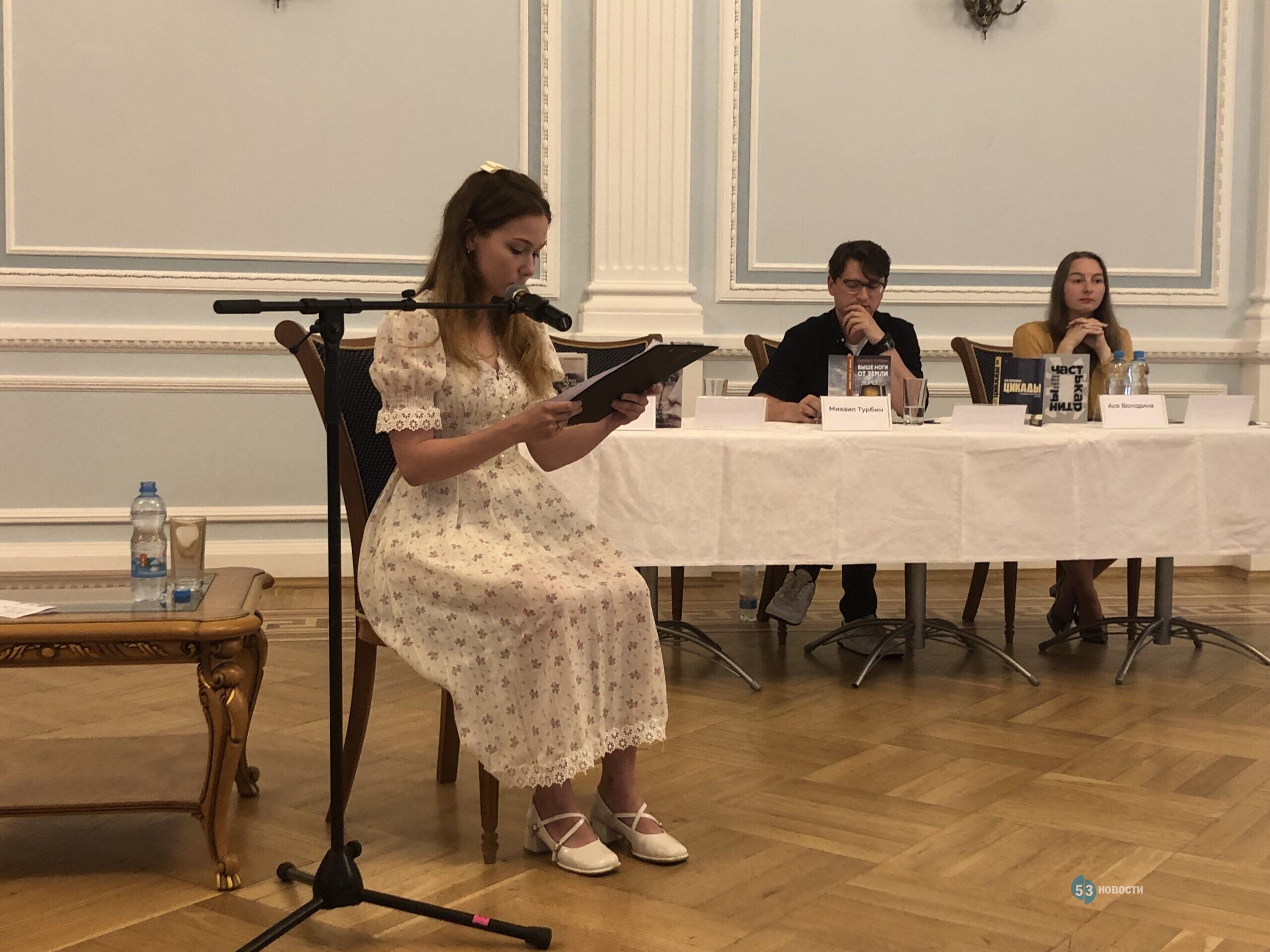 Как ранее сообщали «53 новости», в рамках губернаторского проекта «Новгородское лето» прошла открытая встреча с молодыми российскими писателями Михаилом Турбиным, Асей Володиной и Екатериной Манойло. Из-за непогоды событие перенеслось в малый зал областной филармонии имени Аренского.