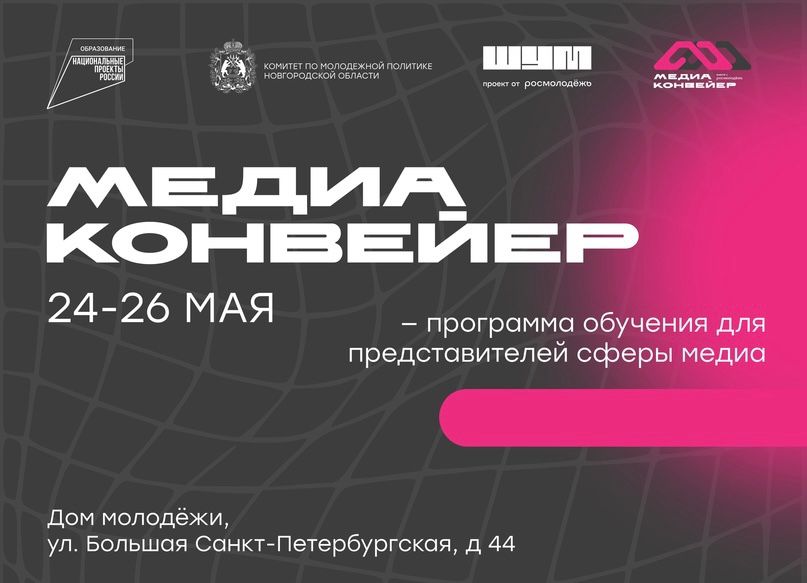 С 24 по 26 мая в Великом Новгороде пройдёт областной молодёжный медиафорум «Медиаконвейер». Его цель — поддержка и развитие молодёжных сообществ, которые формируют молодёжное медиадвижение.