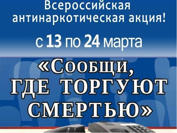 УМВД России по Новгородской области информирует о проведении в период с 13 по 24 марта 2023 года Всероссийской антинаркотической акции «СООБЩИ, ГДЕ ТОРГУЮТ СМЕРТЬЮ!».