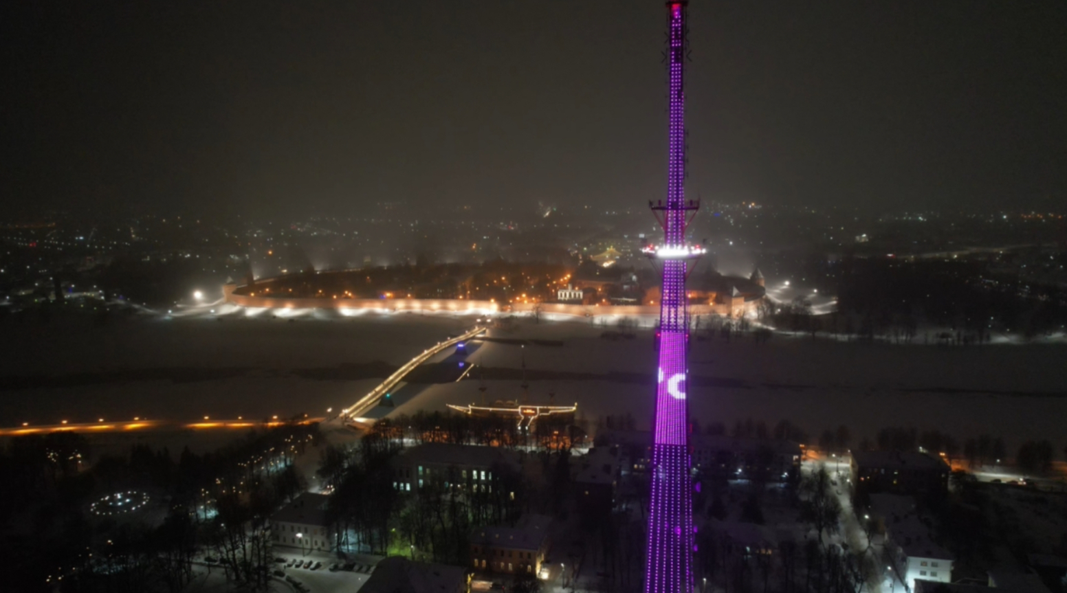 Сегодня на главной телебашне Новгородской области будет запущена праздничная подсветка в честь Международного женского дня – на вышке появится бегущая строка «8 марта – Международный женский день!», также её украсят надписи «С праздником!» и расцветающие фиолетовые пионы.