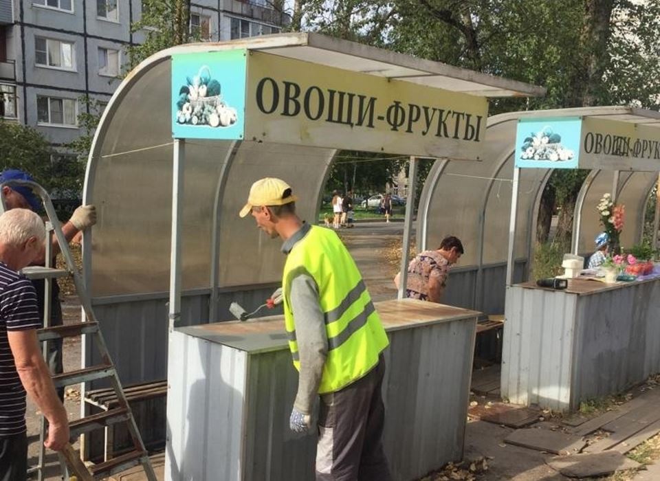 Торговые сельскохозяйственные ряды, позволяющие новгородцам покупать и продавать натуральные продукты, расположенные у Солнечного сквера у дома 32 по Псковской улице, покрасили.