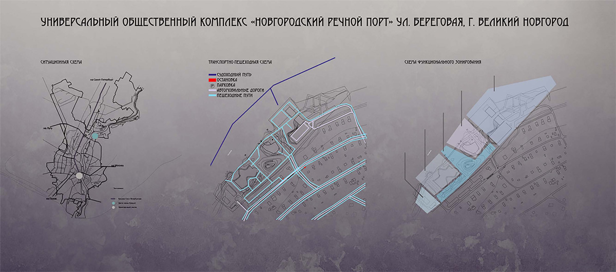 Универсальный общественный комплекс находится в Великом Новгороде. Генплан разработан в соответствии с предложенной схемой ПЗЗ.