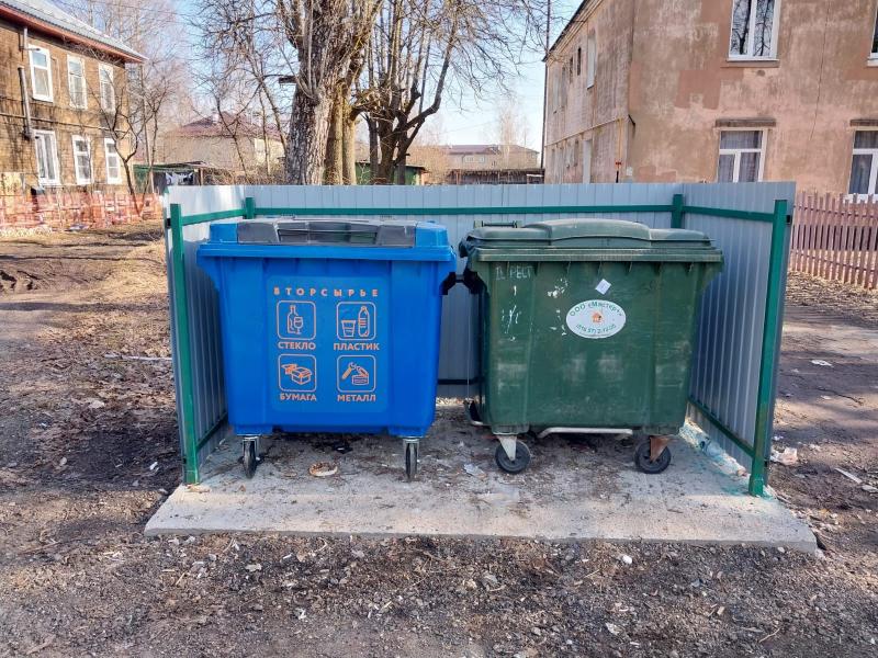 11.04.2023 в г. Окуловка установили контейнеры для раздельного накопления твердых коммунальных отходов на контейнерных площадках :