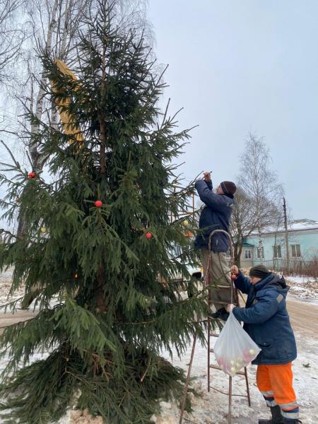 Сотрудниками отдела благоустройства Администрации Окуловского муниципального района совместно с работниками «ООО МУК Окуловскасервис» и «ИП Шерстобоев Ю.Н.» была установлена и украшена Новогодняя ель на ул.