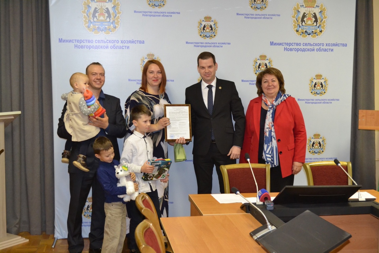 На этой неделе заместитель председателя правительства Новгородской области Олег Шахов и министр сельского хозяйства Новгородской области Елена Покровская вручили шести сельским семьям из Шимского, Новгородского,